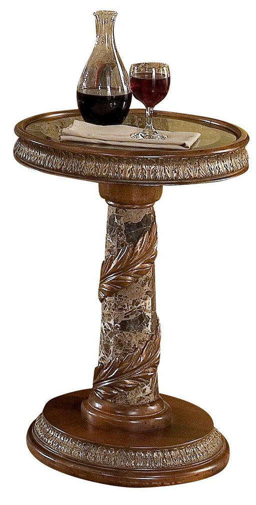AICOVilla Valencia Collection by Aico Furniture Classic Chestnut Finish Crafted from Birch solids Carved wooden leaves Twisted and shaped marble pi...