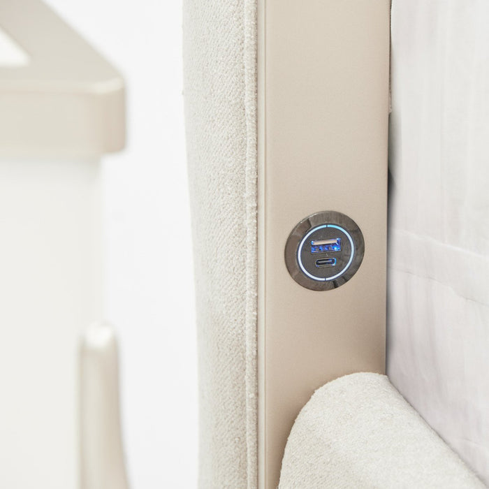 AICO Furniture La Marisia King Upholstered Platform Bed in Creamy Pearl.
