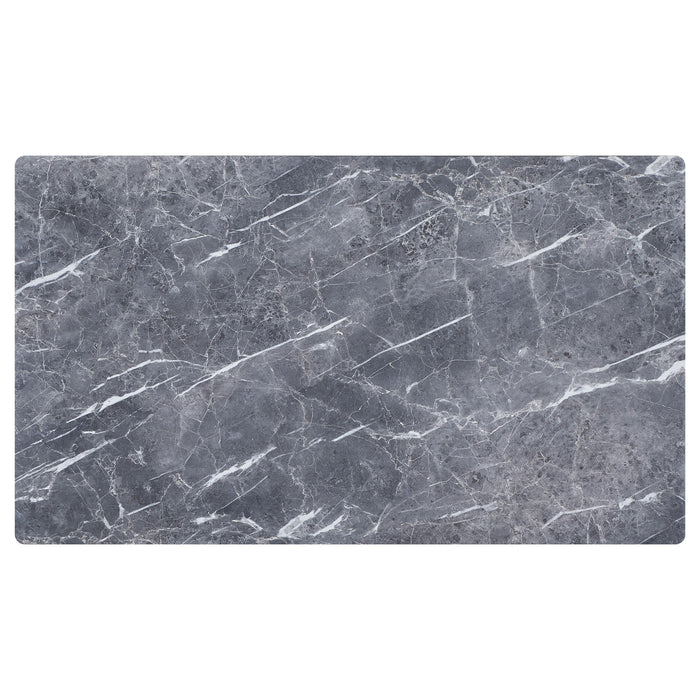 The coffee table stretches out with a confidence born of its mid-century modern heritage, flaunting a rectangular top that offers the luxurious look of marble without the weight. Its high-pressure laminate surface, infused with decorative faux marble laminate, is a visual feast, juxtaposed against the natural brown base that anchors it with a touch of the earthy and real. The sleek lines and cool grey hues are a nod to a design era that celebrated clean aesthetics and functional beauty. It is more than a surface; it's a statement piece, designed to gather around, to showcase, to be lived with and loved.