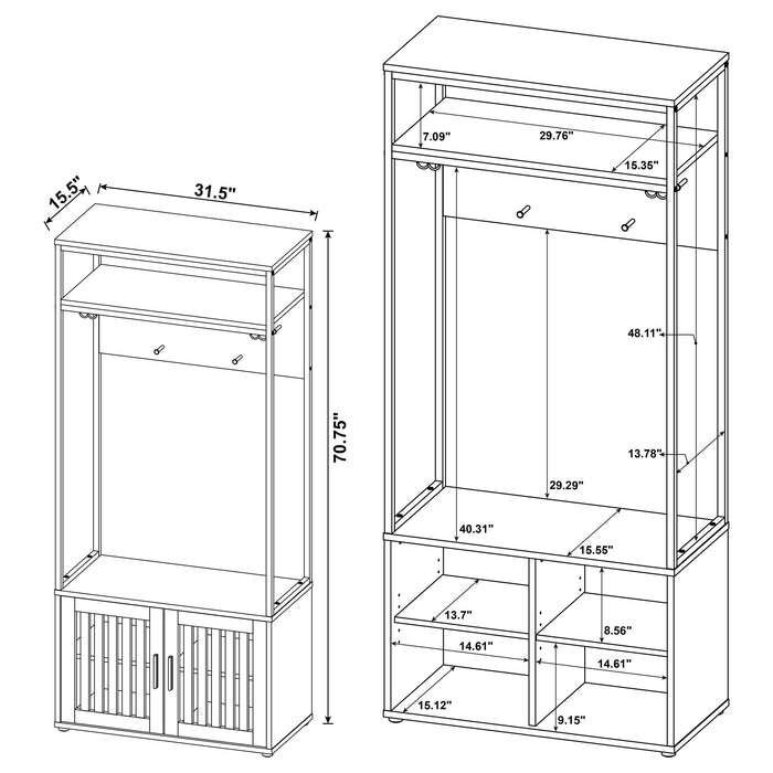 Quincy 2-door Coat Rack Hall Tree Storage Bench Dark Pine