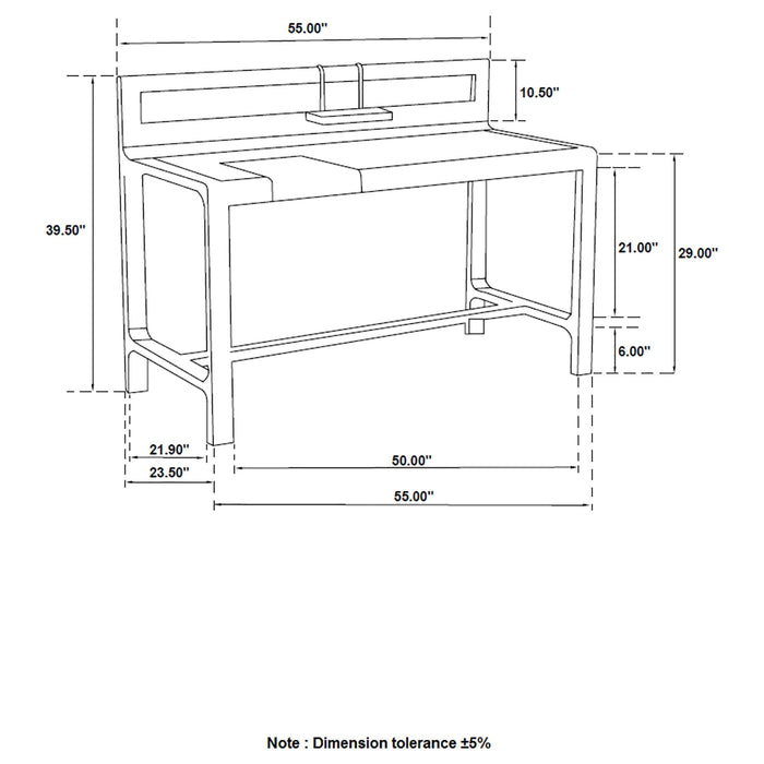 Purston 55-inch Writing Desk with Storage Black and Brass
