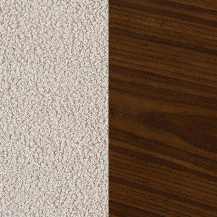 This modern rocking chair blends cozy comfort with sophisticated design, making it an ideal addition to any contemporary home. The plush boucle fabric upholstery wraps the seat and backrest, providing a soft and inviting surface. The walnut-finished bentwood frame adds warmth and elegance, while the curved wooden rockers and sturdy metal legs ensure smooth, stable motion. Whether used in a living room, nursery, or reading nook, this chair's sleek, modern silhouette complements a variety of interiors. Combining high-quality materials and a striking design, this rocker offers both style and comfort for your favorite spaces.