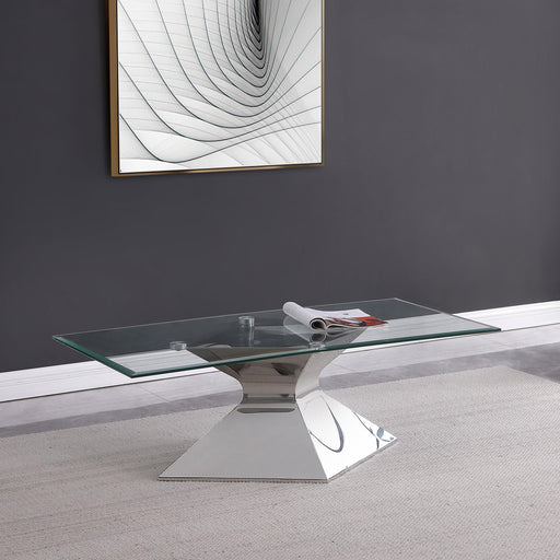 Coaster FurnitureGo bold with this modern coffee table, featuring a polished silver hourglass-inspired pedestal base. Constructed with stainless steel and tempered ...