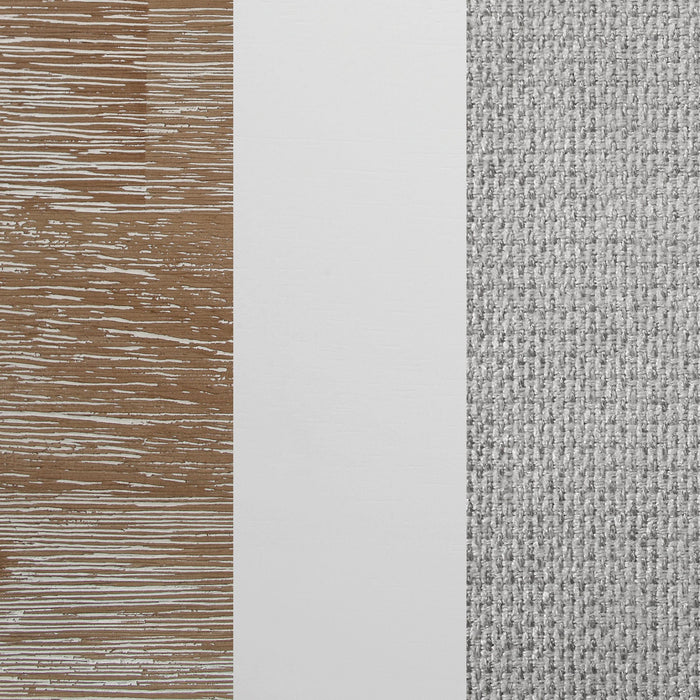 Gather with friends and family around a charming modern farmhouse counter height dining set. It centers on a stylish trestle table with a two-tone finish and includes six chairs to create a seven-piece set perfect or an inviting kitchen or dining room. The set boasts a two-tone finish combination of bright white and wire brushed brown wood grain, creating a touch of warmth while maintaining a clean, precise look and feel. Chairs include open X-cross backs for airy lightness, while padded seats add light gray upholstery for an on-trend touch with timeless appeal. This counter height dining set is ideal for everything from a quick breakfast to weeknight dinners with the kids, creating a pleasing centerpiece in your space.
