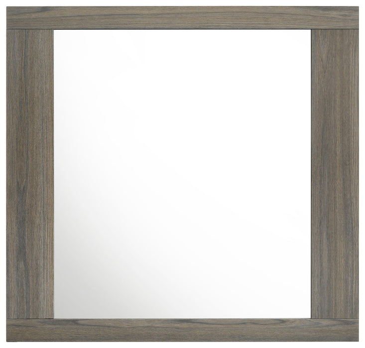 Complete your bedroom's sophisticated look with this contemporary dresser mirror. Designed to perfectly complement the matching dresser, this mirror features a sleek melamine frame that blends natural wood tones for a modern aesthetic. The large reflective surface not only enhances the sense of space in your room but also adds a touch of elegance. Crafted from durable melamine, particle board, and MDF, this mirror is built to last. Elevate your bedroom decor with this stylish and functional accessory, creating a cohesive and elegant environment.