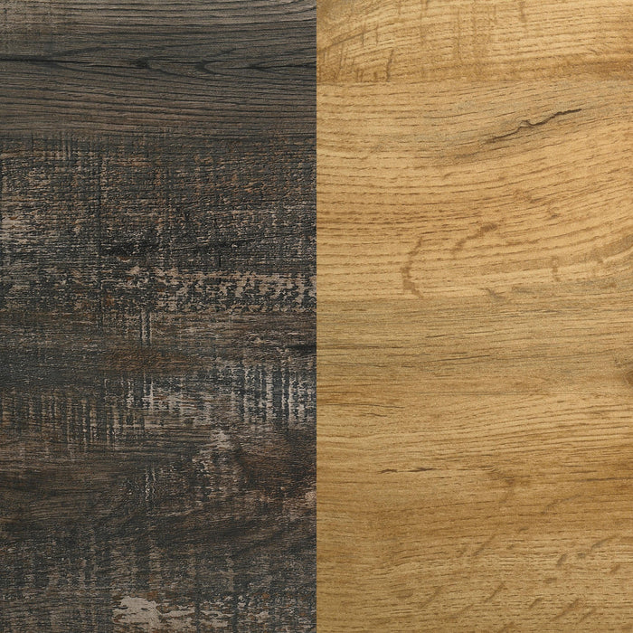 Add a touch of elegance to your bedroom with this spacious dresser, combining mid-century modern design with a rustic wood grain effect. The weathered brown and natural pine finish is beautifully complemented by matte black finished metal pull handles. Crafted from engineered 3D paper veneer and featuring English dovetail drawer joinery, this dresser offers durability and style. The center metal drawer glides ensure smooth operation, while the ample storage space keeps your essentials organized and easily accessible.