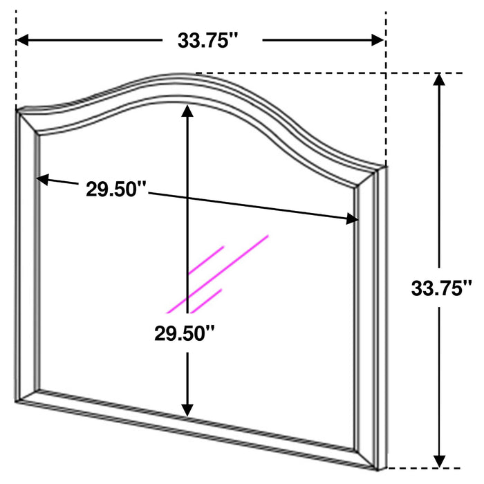 A mirror can add practicality or style to any bedroom. This accent piece from the Dominique collection is designed for both. It's large enough to make sure you're looking great from head to toe for any occasion. Frame is crafted with a curved top that adds taste and style. Mirror is an ideal match for the dresser in the same collection (not included).