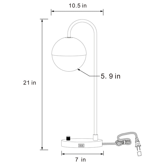 Hints of vintage design infuse a modern table lamp with appealing charm. Great for a desk or side table, the lamp features a slim J-hook arm and round base for a classic stance that delivers diffuse illumination for tasks and ambiance. Its domed metal shade and soft gold finish add richness to the overall look. A white glass globe completes the look to perfection, glowing warmly in your living room or den. The lamp is equipped with a built-in USB port, adding modern multi-functionality in a favorite sitting area.