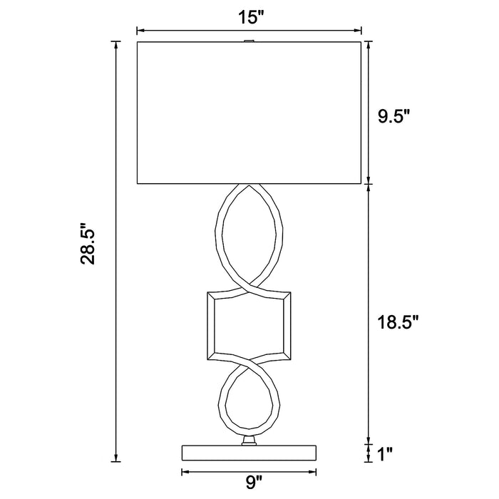 Elevate your décor with this striking table lamp featuring a sculptural black metal base of interlocking geometric shapes. A crisp white rectangular shade sits above, offering a clean contrast and ample illumination. Perfect for modern spaces, this lamp brings a balanced blend of artful design and everyday function to entryways, desks, or end tables.