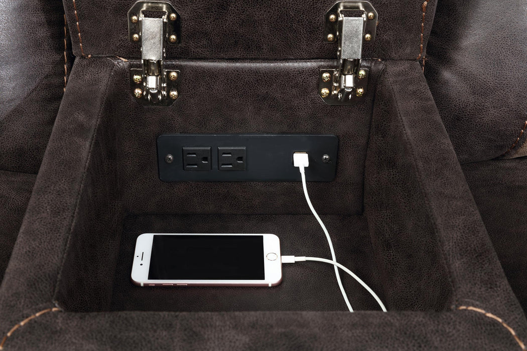 Bring friends and family to watch the newest movie with this motion living room set. Pocket coil seating makes for an incredible seating experience along with padded armrests. Guests can keep drinks on hand by using the built-in cupholders. Find a convenient storage space for reading materials inside a pocket behind the drop-down table. This living room set with consoles keeps your living area organized and stylish.