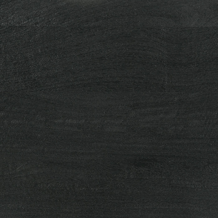 A dramatic charcoal black finish coats wood products construction, adding a bold look to this casual yet elegant TV stand. Gather entertainment-related gear and organize it in this tasteful stand built of mango wood with a rustic aesthetic. Set atop black finish iron bracket legs, it creates a sturdy venue for a large flat-screen TV. Components find room in two side compartments, as incidentals and media may be stashed on a fixed shelf behind two side doors with ornate iron hardware. Avoid clutter with a pre-cut wire management hole.