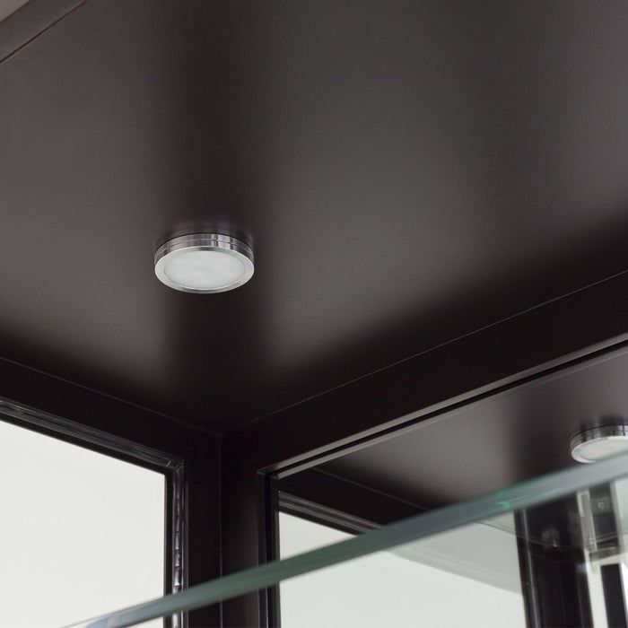 AICO Malibu Crest Display Cabinet in Crotch Mahogany 9007209-412. Display your sophisticated taste with the Malibu Crest Display Cabinet! It features three levels of glass shelving and a fully mirrored back panel that optimizes the LED display lighting. Watch your china and accents reach a level of illumination you never expected.